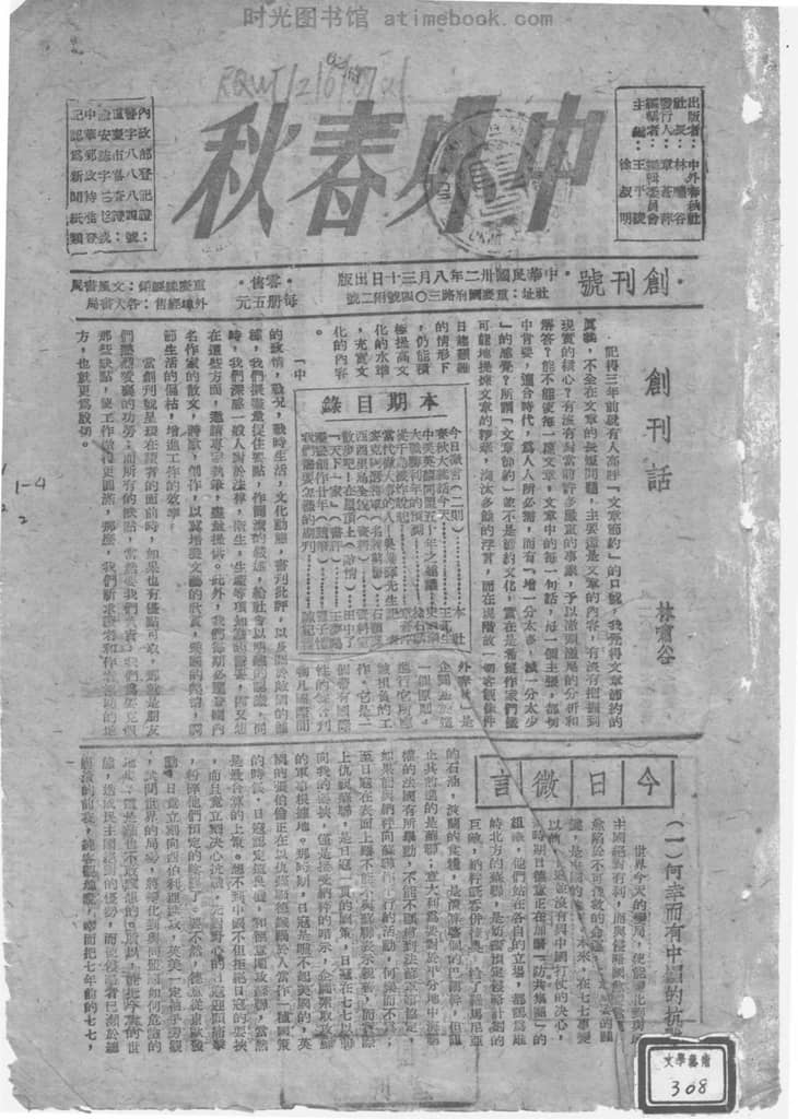 网盘路径:/时光图书馆珍藏系列/书籍文件/老杂志、老期刊/民国期刊/四川/《中外春秋》(重庆)1943-1945年合集.db