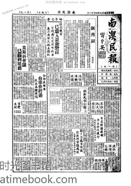 书籍名称:《南澳民报》1947-1947年合集