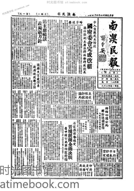 网盘路径:/时光图书馆珍藏系列/书籍文件/老报纸/《南澳民报》1947-1947年合集.db