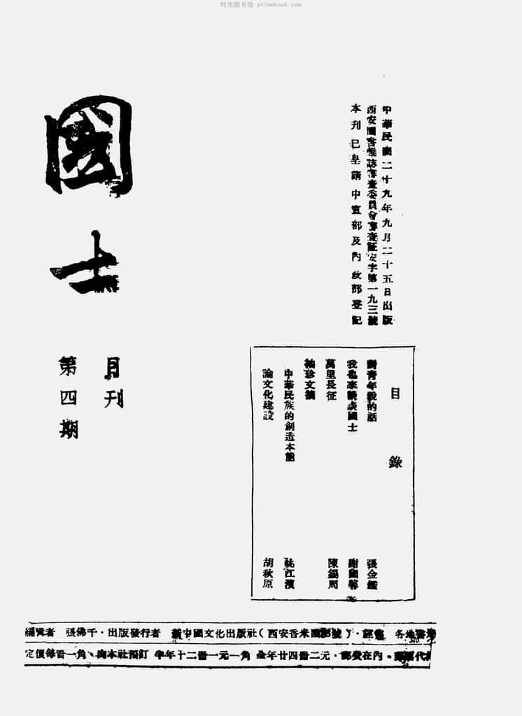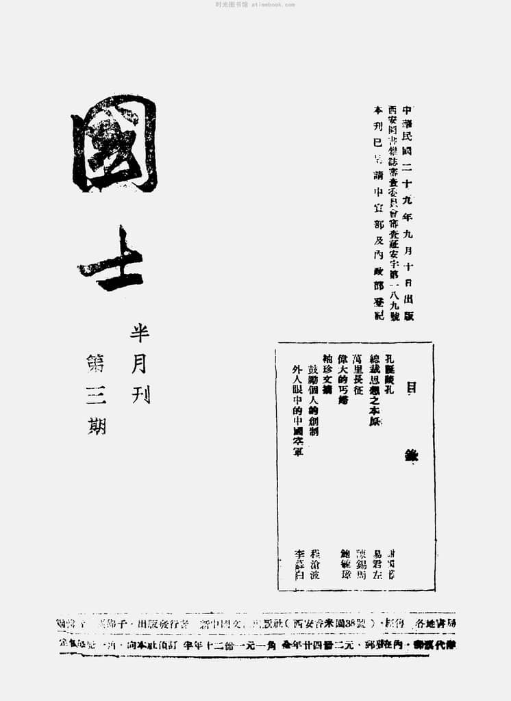 网盘路径:/时光图书馆珍藏系列/书籍文件/老杂志、老期刊/民国期刊/陕西/《国士》(西安)1940-1940年合集.db