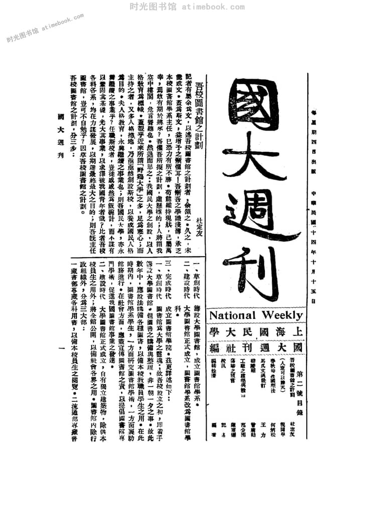 网盘路径:/时光图书馆珍藏系列/书籍文件/老杂志、老期刊/民国期刊/上海/《国大周刊》(上海市)1925-1927年合集.db
