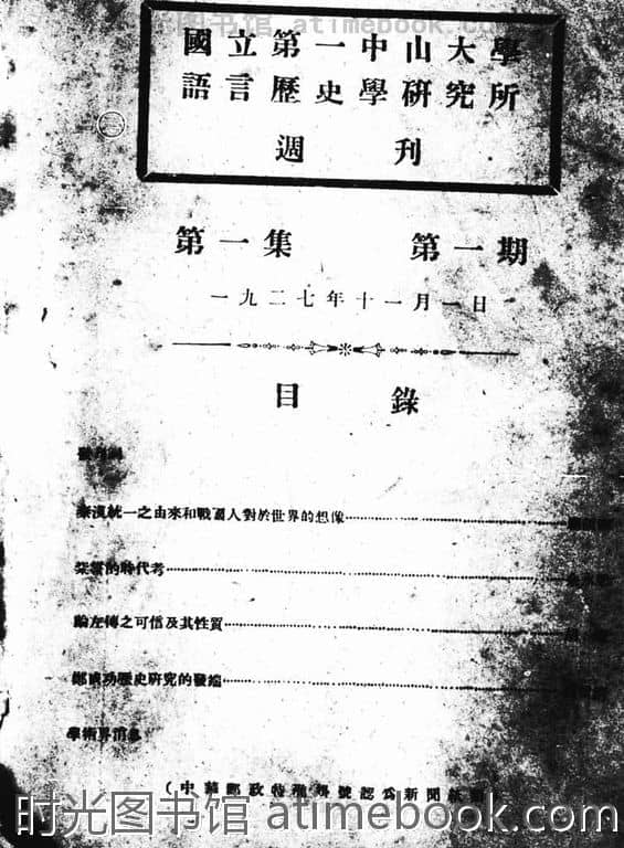 网盘路径:/时光图书馆珍藏系列/书籍文件/老杂志、老期刊/民国期刊/广东/《国立第一中山大学语言历史学研究所周刊》1927-1930年合集.db