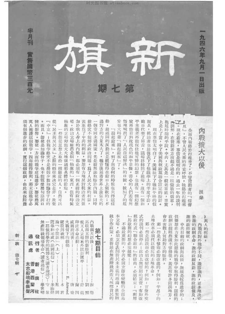 网盘路径:/时光图书馆珍藏系列/书籍文件/老杂志、老期刊/民国期刊/香港/《新旗》(香港)1946-1948年合集.db