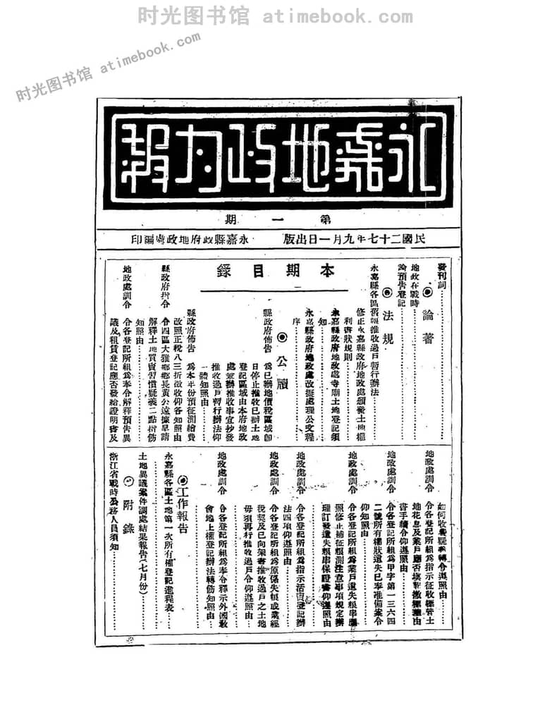 网盘路径:/时光图书馆珍藏系列/书籍文件/老杂志、老期刊/《永嘉地政月刊》1938-1939年合集.db