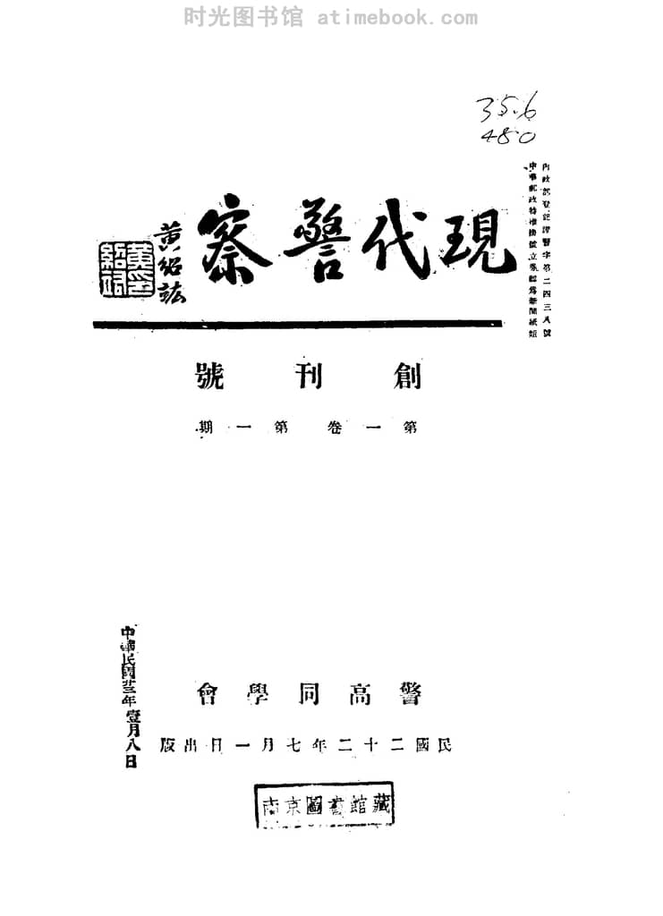 网盘路径:/时光图书馆珍藏系列/书籍文件/老杂志、老期刊/民国期刊/南京/《现代警察》(南京)1933-1939年合集.db