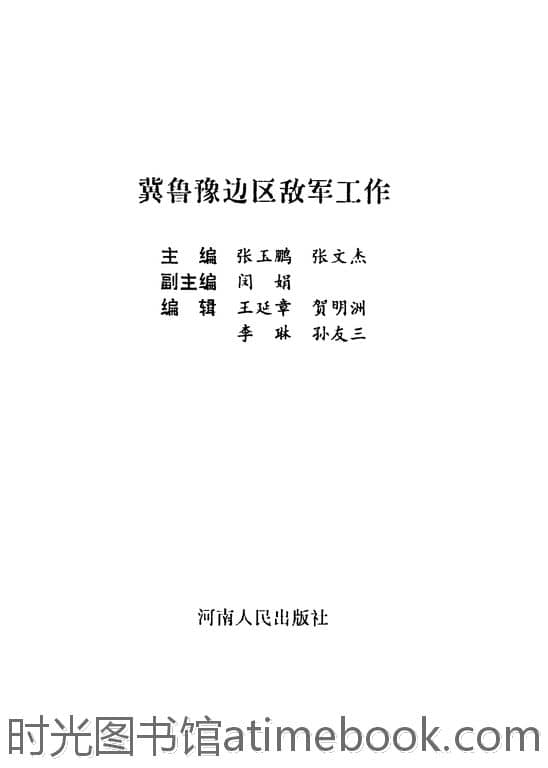 | 网盘路径:/时光图书馆珍藏系列/书籍文件/老图书/《冀鲁豫边区敌军工作》电子版合集.db | ||