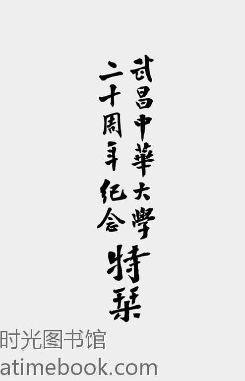 | 网盘路径:/时光图书馆珍藏系列/书籍文件/老图书/《武昌中华大学二十周年纪念特刊》电子版合集.db | ||