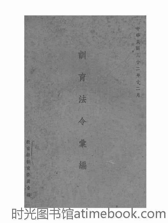 | 网盘路径:/时光图书馆珍藏系列/书籍文件/老图书/《训育法令汇编》电子版合集.db | ||