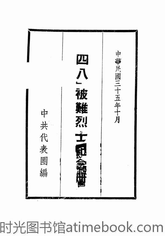 | 网盘路径:/时光图书馆珍藏系列/书籍文件/老图书/《“四八”被难烈士纪念册》电子版合集.db | ||