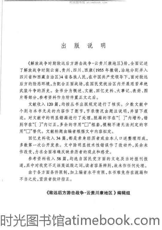 | 网盘路径:/时光图书馆珍藏系列/书籍文件/老图书/《解放战争时期敌远后方游击战争_·云贵川康地区》电子版合集.db | ||