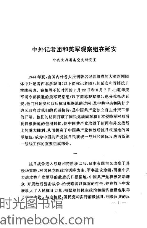 | 网盘路径:/时光图书馆珍藏系列/书籍文件/老图书/《中外记者团和美军观察组在延安》电子版合集.db | ||