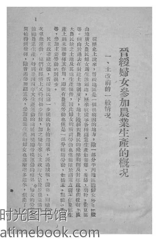 | 网盘路径:/时光图书馆珍藏系列/书籍文件/老图书/《晋绥妇女参加农业生产概况》电子版合集.db | ||