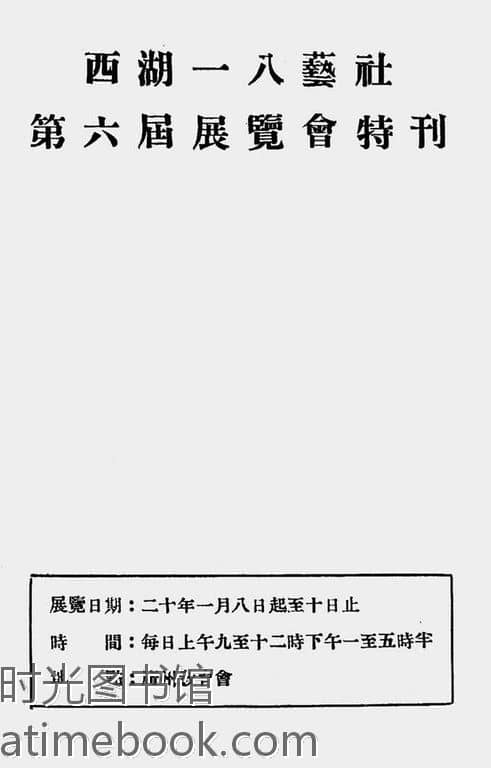 | 网盘路径:/时光图书馆珍藏系列/书籍文件/老图书/《西湖一八艺社第六届展览会特刊》电子版合集.db | ||