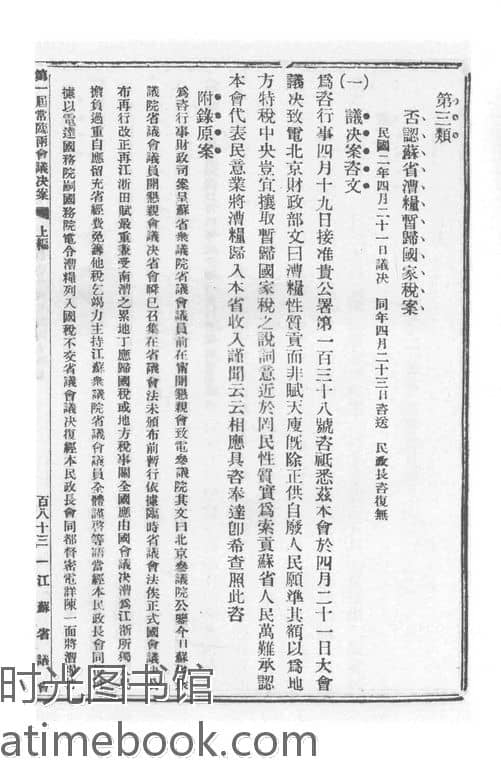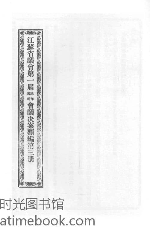 | 网盘路径:/时光图书馆珍藏系列/书籍文件/老图书/《江苏省议会第一届常年临时会议决案类编_第3册》电子版合集.db | ||