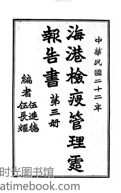 | 网盘路径:/时光图书馆珍藏系列/书籍文件/老图书/《海港检疫管理处报告书_第3册》电子版合集.db | ||