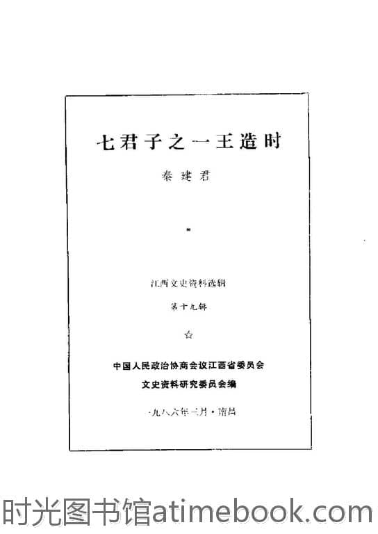 | 网盘路径:/时光图书馆珍藏系列/书籍文件/老图书/《江西文史资料选辑_总第19辑_七君子之一王造时》电子版合集.db | ||