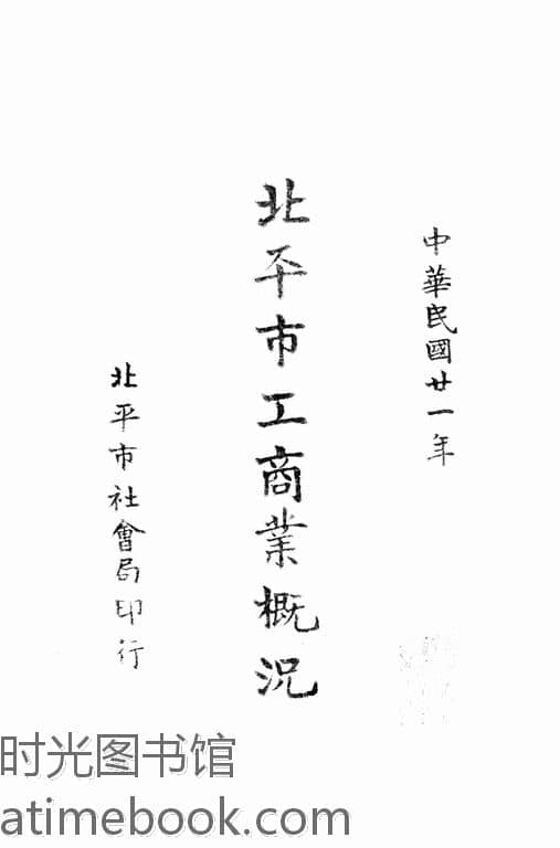 | 网盘路径:/时光图书馆珍藏系列/书籍文件/老图书/《北平市工商业概况》电子版合集.db | ||
