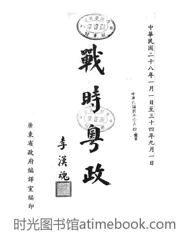 | 网盘路径:/时光图书馆珍藏系列/书籍文件/老图书/《战时粤政(中华民国二十八年一月一日至三十四年九月一日)》电子版合集.db | ||