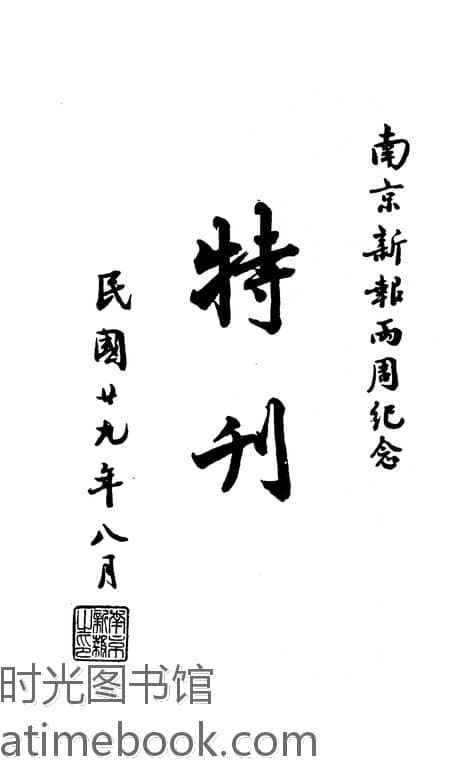 | 网盘路径:/时光图书馆珍藏系列/书籍文件/老图书/《南京新报二周年纪念特刊》电子版合集.db | ||
