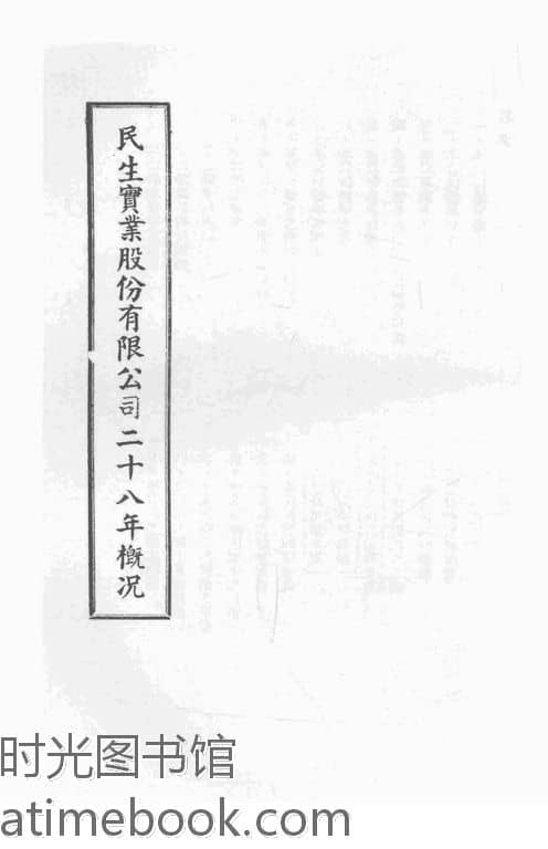 | 网盘路径:/时光图书馆珍藏系列/书籍文件/老图书/《民生实业股份有限公司二十八年概况》电子版合集.db | ||