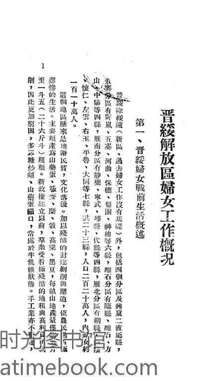 | 网盘路径:/时光图书馆珍藏系列/书籍文件/老图书/《晋绥解放区妇女工作概况》电子版合集.db | ||