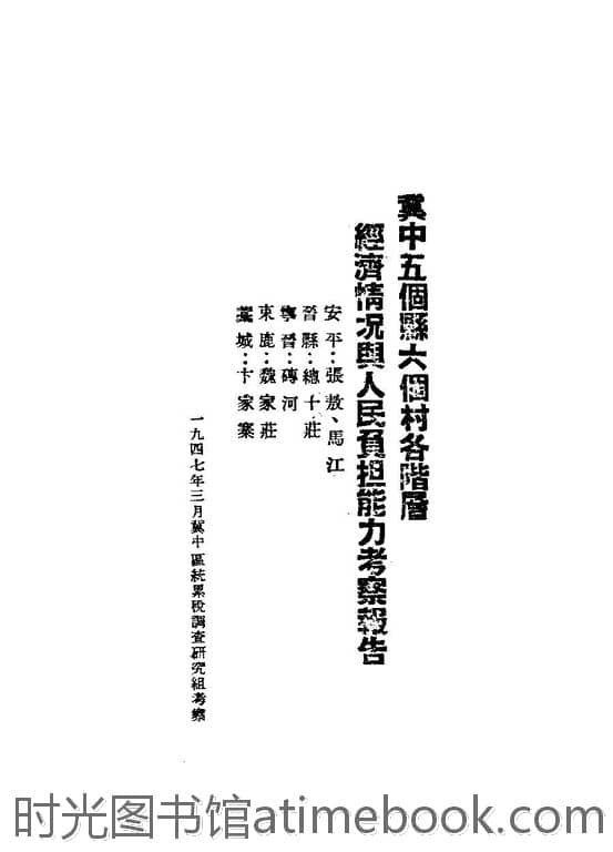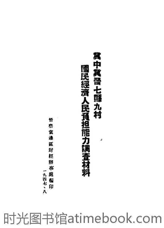 | 网盘路径:/时光图书馆珍藏系列/书籍文件/老图书/《冀中冀晋七县九村国民经济人民负担能力调查材料》电子版合集.db | ||