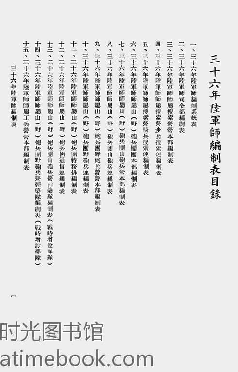 | 网盘路径:/时光图书馆珍藏系列/书籍文件/老图书/《三十六年陆.军.师.编.制.表》电子版合集.db | ||