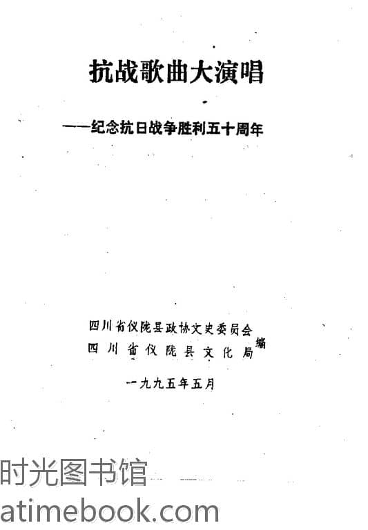 | 网盘路径:/时光图书馆珍藏系列/书籍文件/老图书/《抗战歌曲大演唱-纪念抗日战争胜利五十周年》电子版合集.db | ||