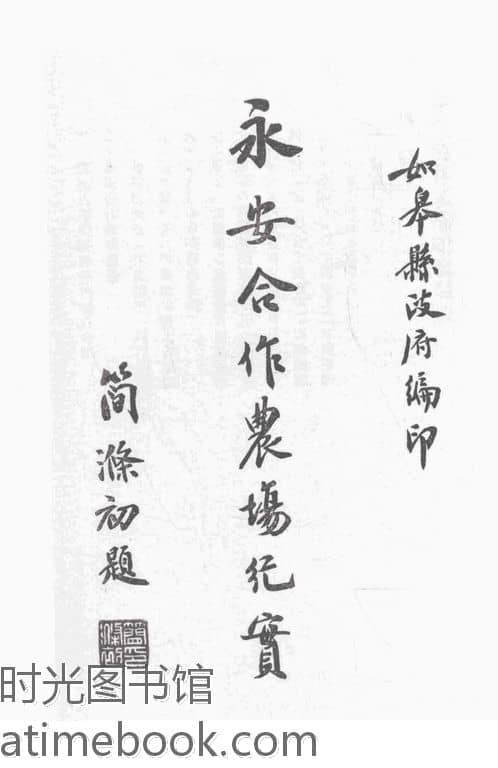 | 网盘路径:/时光图书馆珍藏系列/书籍文件/老图书/《永安合作农场纪实》电子版合集.db | ||