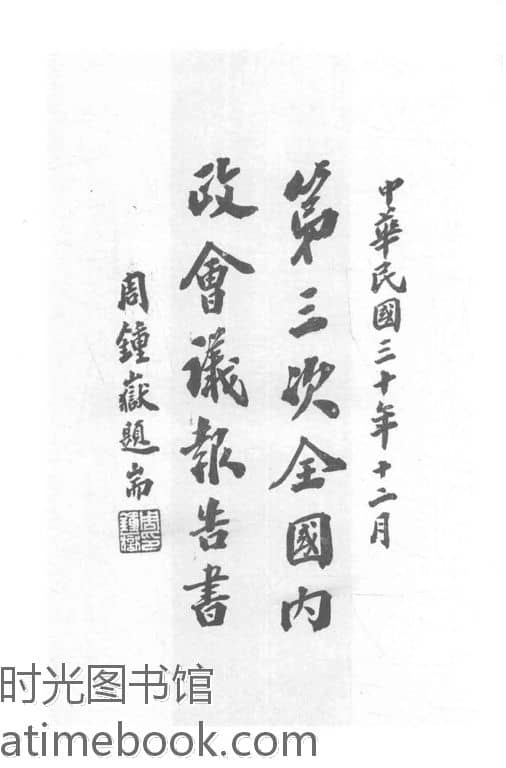 | 网盘路径:/时光图书馆珍藏系列/书籍文件/老图书/《第三次全国内政会议报告书》电子版合集.db | ||