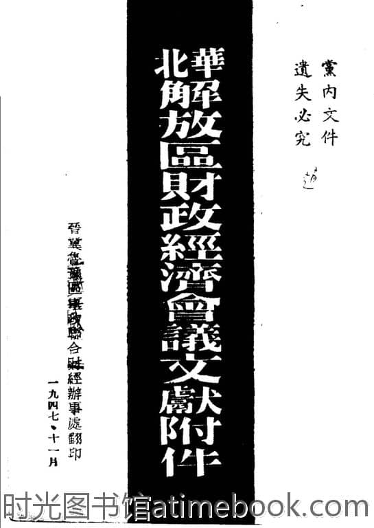 | 网盘路径:/时光图书馆珍藏系列/书籍文件/老图书/《华北解放区财政经济会议文献附件》电子版合集.db | ||