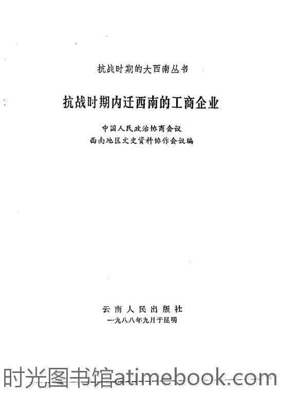 | 网盘路径:/时光图书馆珍藏系列/书籍文件/老图书/《抗战时期内迁西南的工商企业》电子版合集.db | ||