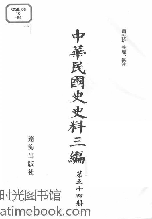| 网盘路径:/时光图书馆珍藏系列/书籍文件/老图书/《中华民国史史料三编_第54册》电子版合集.db | ||