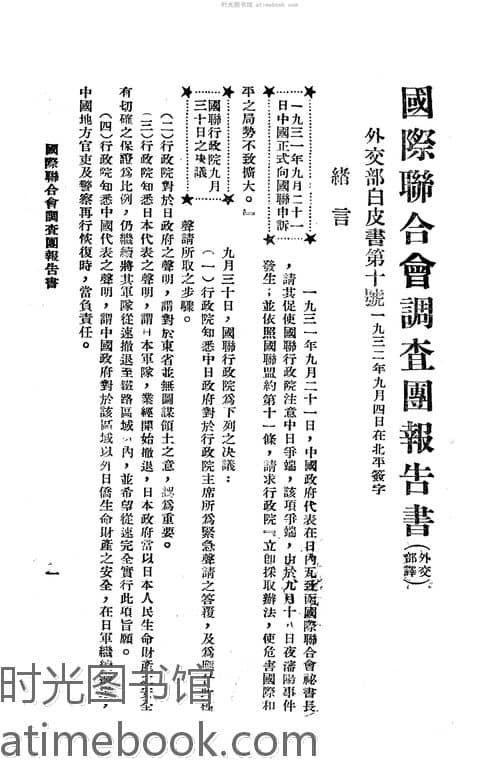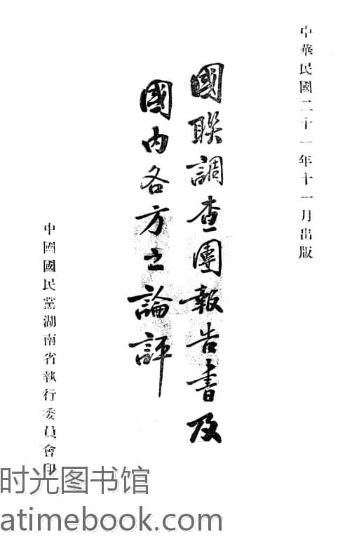 | 网盘路径:/时光图书馆珍藏系列/书籍文件/老图书/《国联调查团报告书及国内各方之论评》电子版合集.db | ||