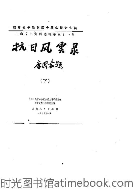 | 网盘路径:/时光图书馆珍藏系列/书籍文件/老图书/《上海文史资料选辑_第51辑_抗日风云录_下》电子版合集.db | ||