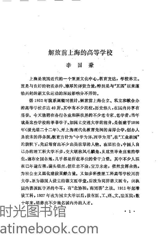 | 网盘路径:/时光图书馆珍藏系列/书籍文件/老图书/《上海文史资料选辑_第59辑(解放前上海的学校)》电子版合集.db | ||