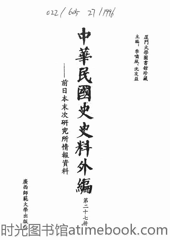 | 网盘路径:/时光图书馆珍藏系列/书籍文件/老图书/《中华民国史史料外编_——前日本末次研究所情报资料_中文部分_第27册》电子版合集.db | ||