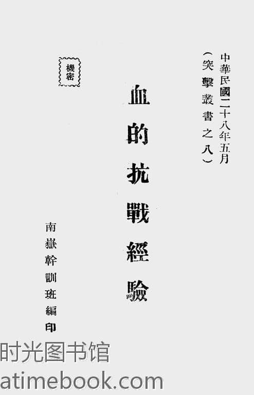 | 网盘路径:/时光图书馆珍藏系列/书籍文件/老图书/《血的抗战经验》电子版合集.db | ||