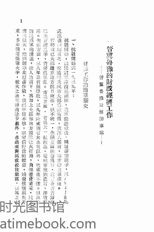 | 网盘路径:/时光图书馆珍藏系列/书籍文件/老图书/《晋冀鲁豫的财政经济工作》电子版合集.db | ||