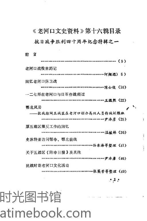 文件下载 | 名称:《老河口文史资料_第16辑_抗日战争胜利40周年纪念专辑》电子版合集 | |