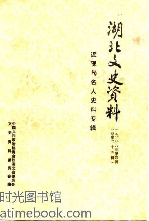 | 网盘路径:/时光图书馆珍藏系列/书籍文件/老图书/《湖北文史资料_1988年_第4辑_总第25辑_湖北近现代名人史料专辑》电子版合集.db | ||