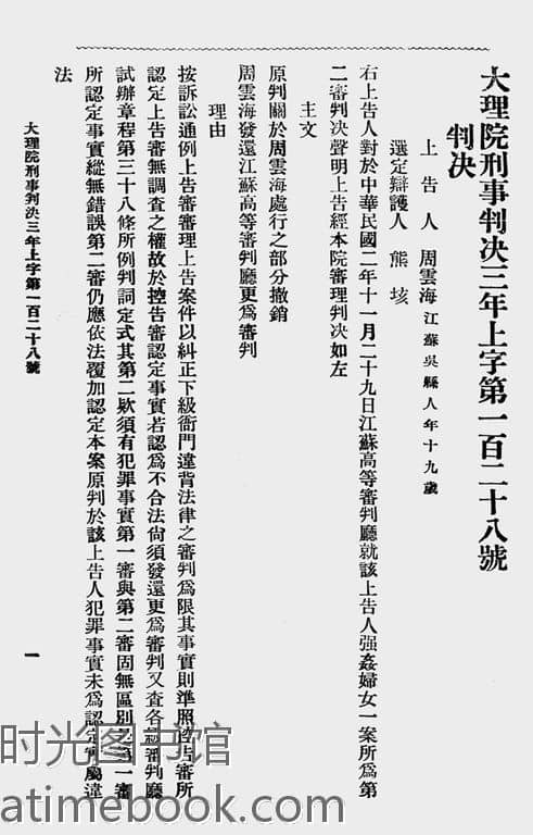 | 网盘路径:/时光图书馆珍藏系列/书籍文件/老图书/《大理院判决录(民国三年六月份)(3)》电子版合集.db | ||