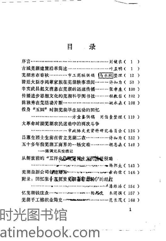 | 网盘路径:/时光图书馆珍藏系列/书籍文件/老图书/《芜湖文史资料_第1辑》电子版合集.db | ||