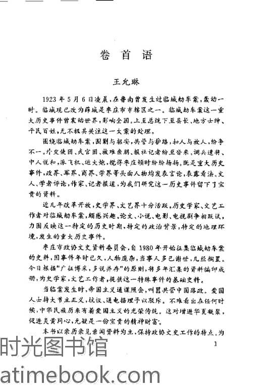 | 网盘路径:/时光图书馆珍藏系列/书籍文件/老图书/《枣庄文史资料_第21辑_临城劫车案》电子版合集.db | ||
