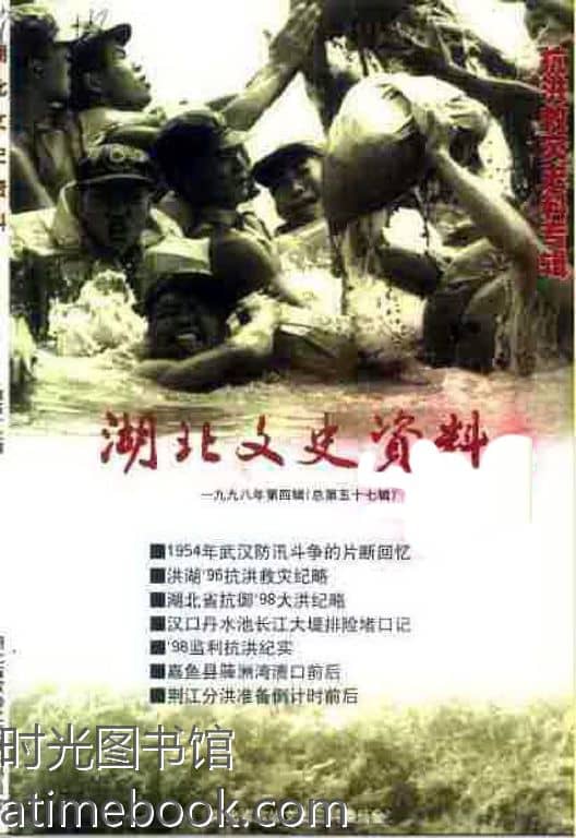 | 网盘路径:/时光图书馆珍藏系列/书籍文件/老图书/《湖北文史资料_1998年第4辑_总第57辑_抗洪救灾专辑》电子版合集.db | ||