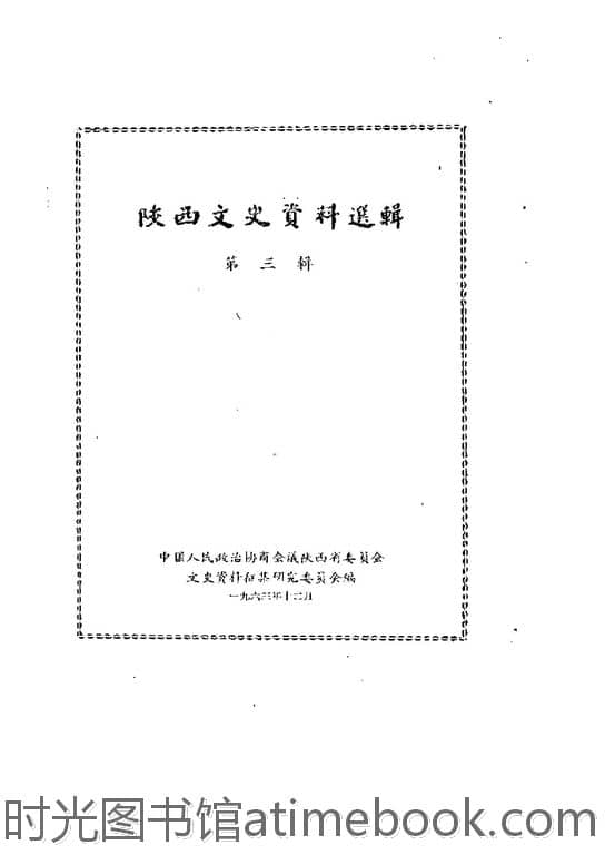| 网盘路径:/时光图书馆珍藏系列/书籍文件/老图书/《陕西文史资料选辑_第3辑》电子版合集.db | ||