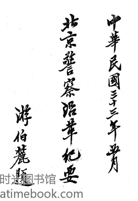 | 网盘路径:/时光图书馆珍藏系列/书籍文件/老图书/《北京警察沿革纪要》电子版合集.db | ||