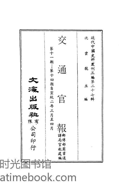 | 网盘路径:/时光图书馆珍藏系列/书籍文件/老图书/《交通官报(第十一-十四期自宣统二年三-四月)》电子版合集.db | ||