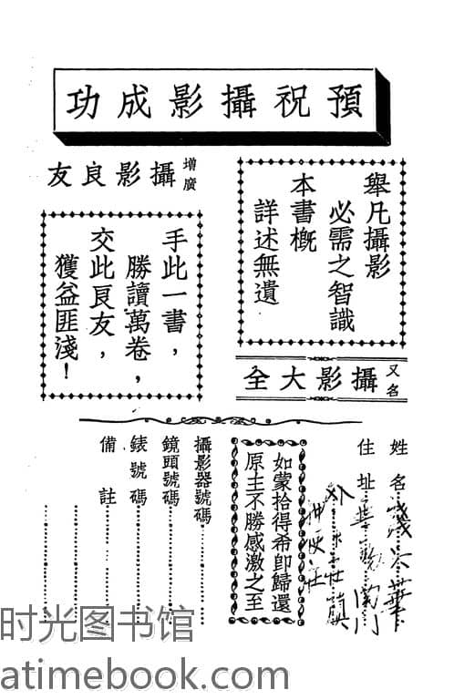 文件下载 名称:《摄影良友》电子版合集 关键词:摄影,摄影室,承影, 出版地区:上海 1928年8月 文件大小:235.39 MB 原始格式:db数据库 导出格式:png 下载方式:百度网盘、夸克网盘、阿里云盘、123云盘 网盘路径:/时光图书馆珍藏系列/书籍文件/老图书/《摄影良友》电子版合集.db 提示:也支持在线观看,安装阅读器即可,无需额外下载书籍文件。 下载地址: ★阅读器★ 百度网盘 阿里云盘 123云盘 夸克网盘 内容截图:(图片有压缩,网盘下载后更清晰) 书籍获取:书籍合集 喜欢 (0)