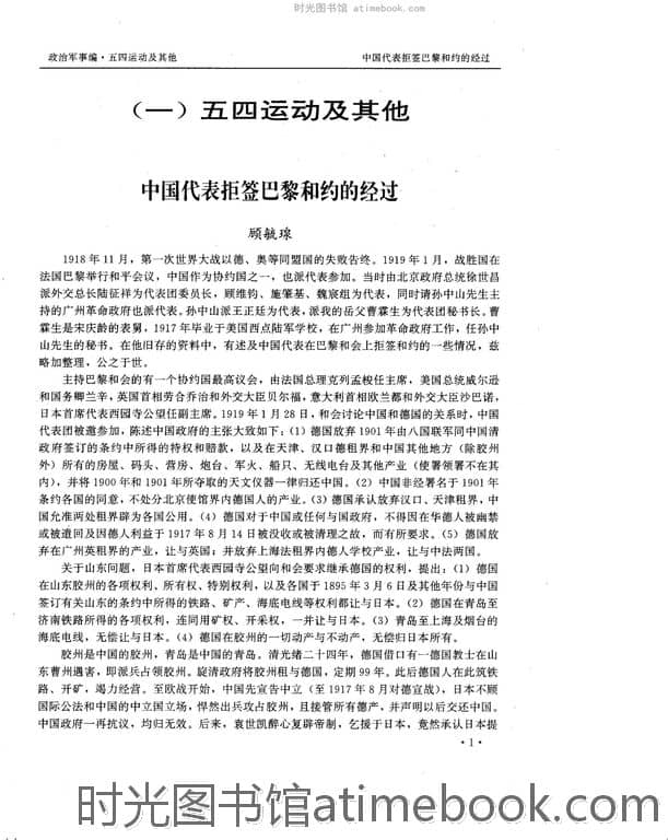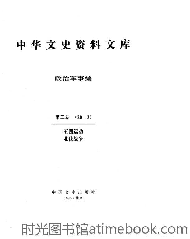 | 网盘路径:/时光图书馆珍藏系列/书籍文件/老图书/《中华文史资料文库_政治军事篇_第2卷_五四运动_北伐战争》电子版合集.db | ||